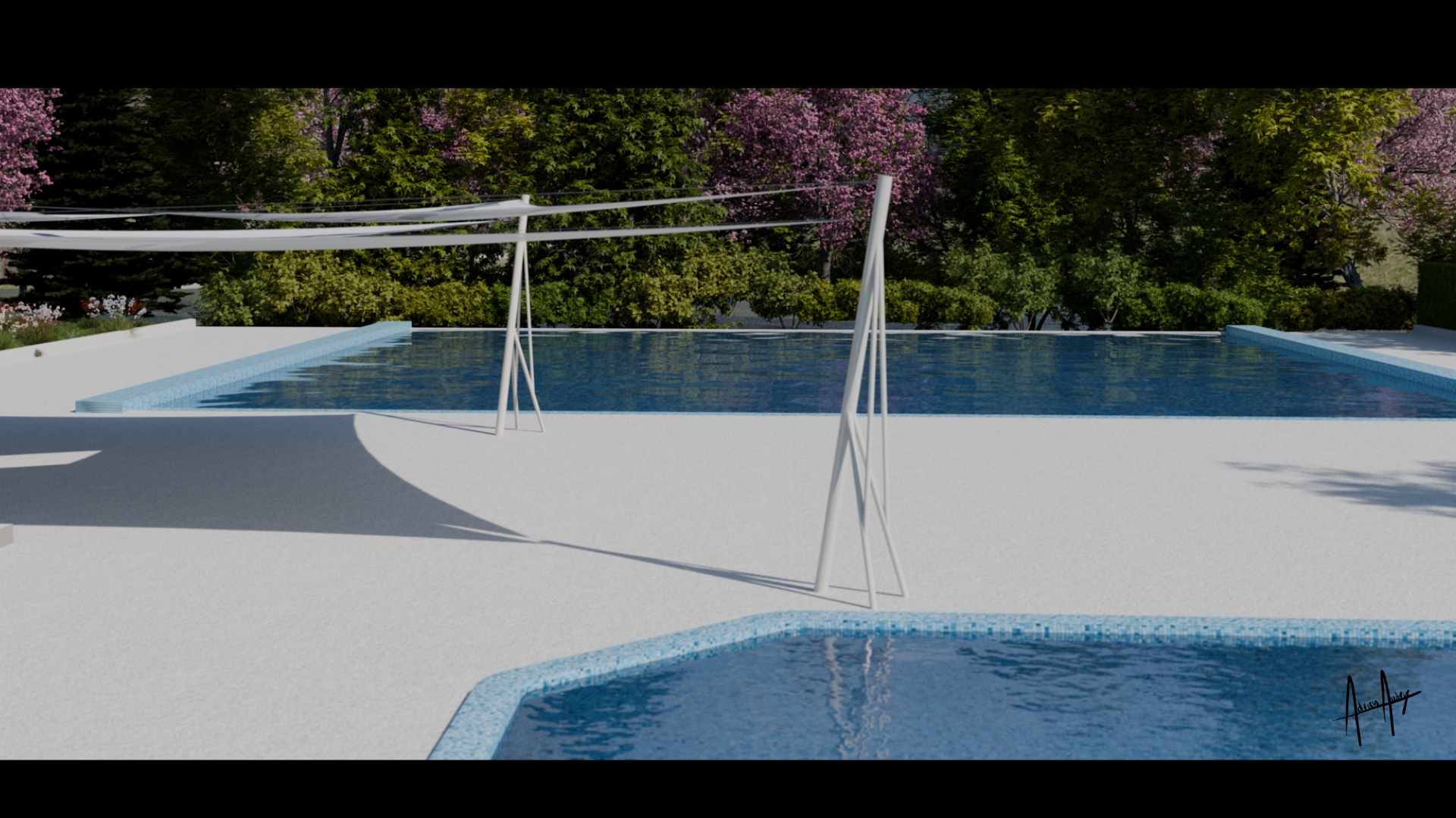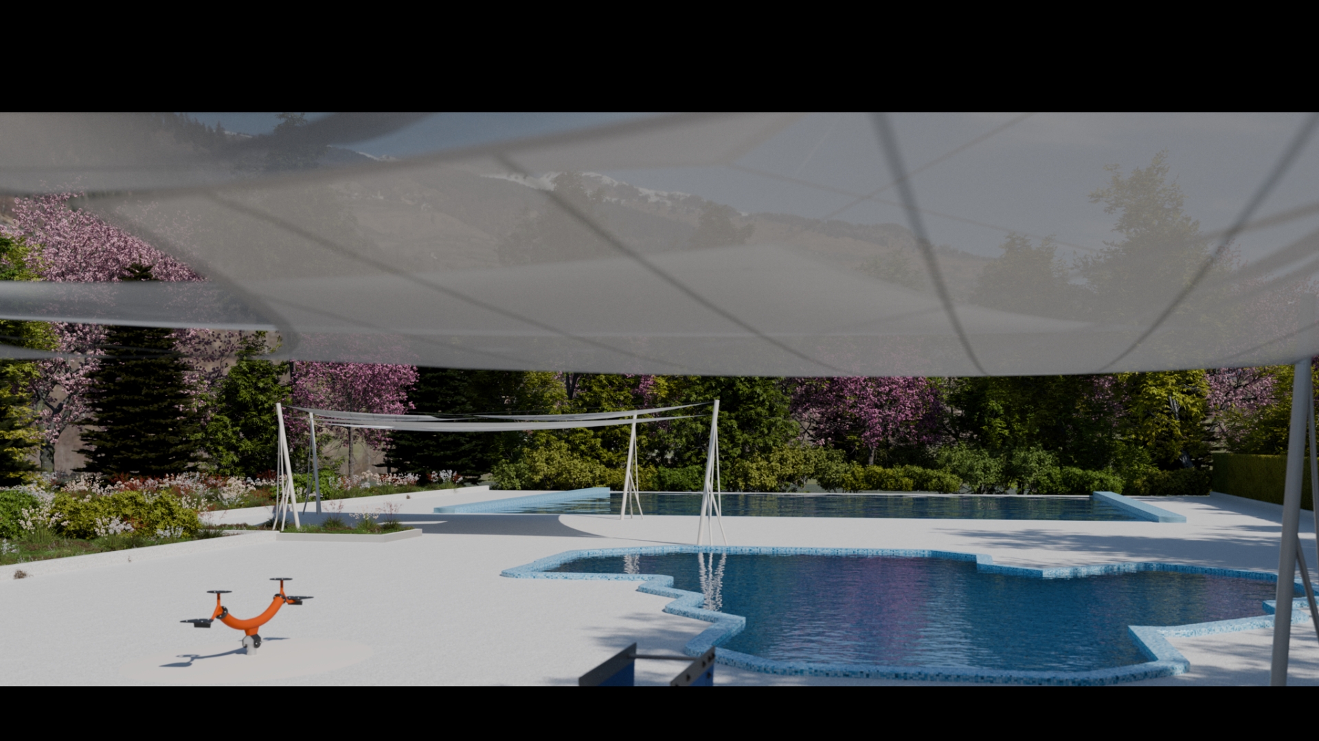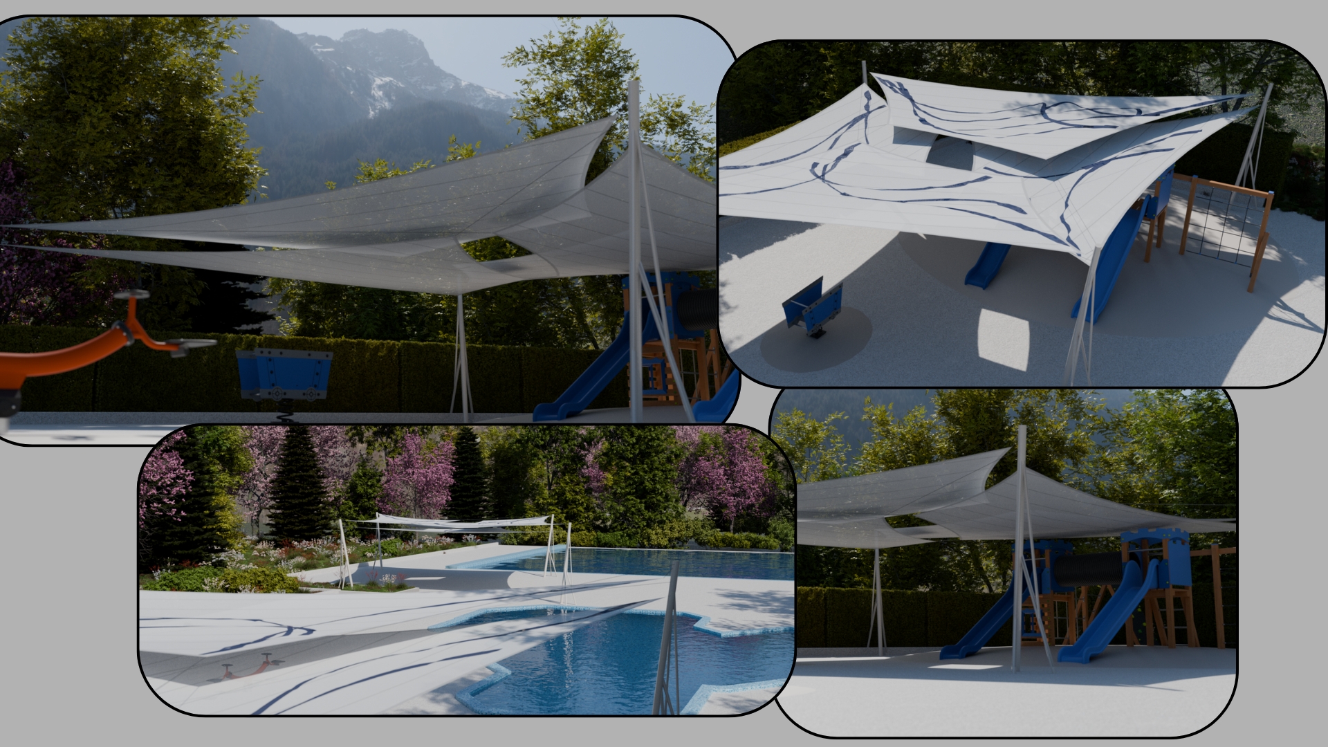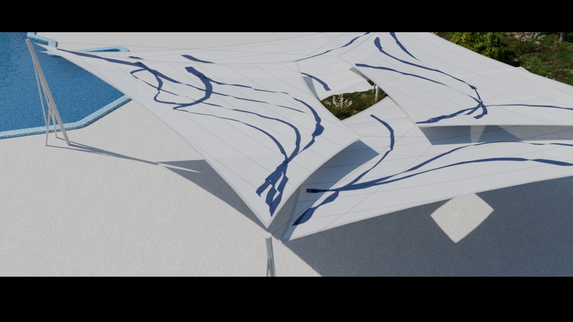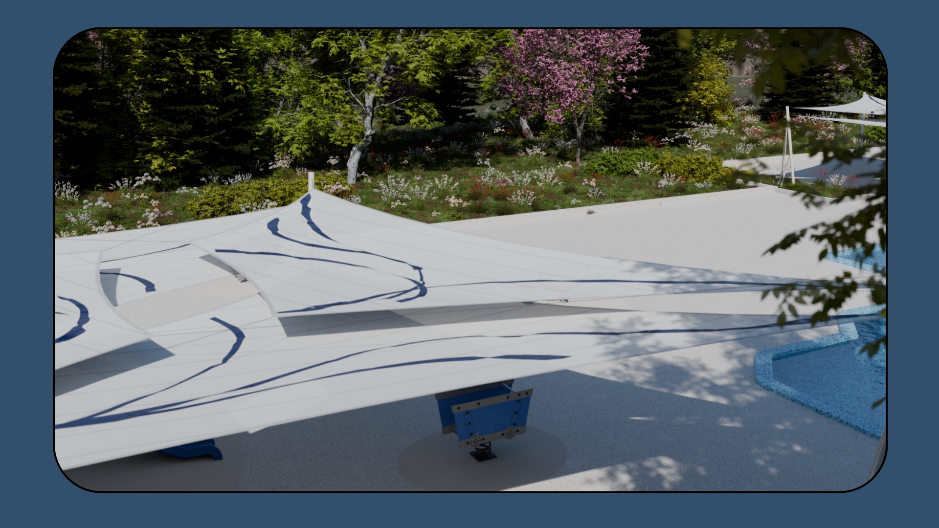 Les mâts sont dessinés pour l’occasion — des tiges d’acier thermolaqué qui s’entrecroisent et s’évasent vers le sol, reprenant la silhouette des bézières, ces chevalets de bois qui portaient l’eau jusqu’aux moulins.